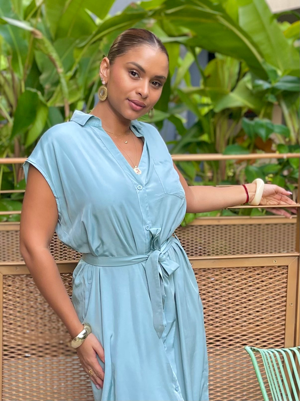 La robe chemise CARMEN séduit par sa coupe fluide et son style intemporel.