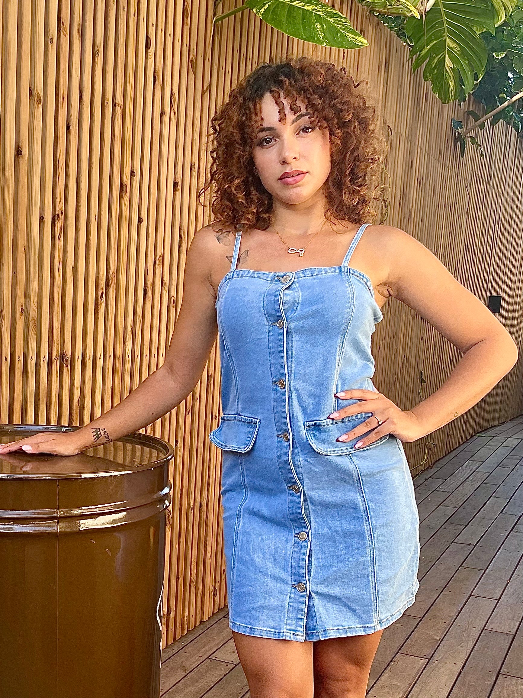 Robe Jeans à fines bretelles, coupe près du corps et boutonnage sur le devant.Sa matière denim structurée et ses poches plaquées subliment la silhouette tout en offrant un confort optimal.
